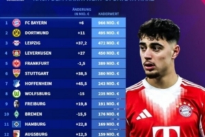 1. 拜仁慕尼黑:目前身价9.66亿欧,本次更新上升600万欧