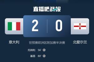 体育资讯03月27日讯 世预赛欧洲区附加赛半决赛,意大利队主场2-0北爱尔兰晋级附加赛决赛,距世界杯正赛仅一步之遥。他们将在附加赛决赛对阵波黑。