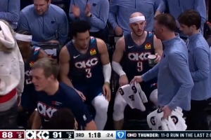 终于能喘口气!SGA反击击地助卡鲁索上篮2+0 雷霆2分多钟11-0反超