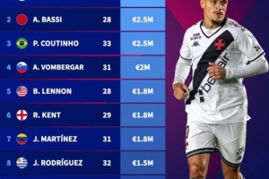4、沃姆贝加尔(31岁):200万欧