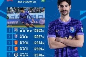 体育资讯3月11日讯 今日,中超联赛官方公布了首轮联赛跑动榜,津门虎外援豪梅·格劳以13802米的跑动距离居首。